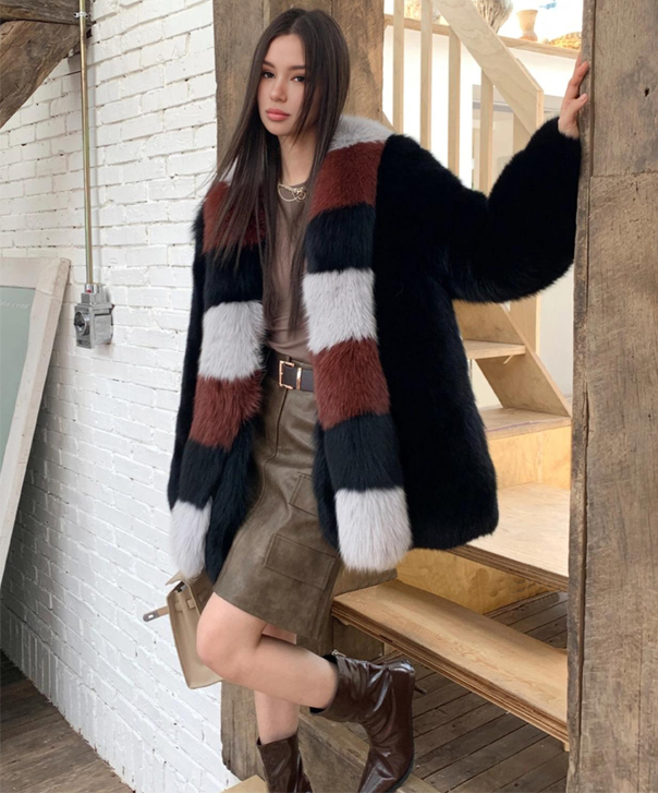 Damen Winter Noir Fuchspelzmantel