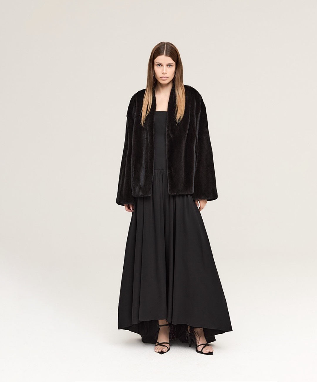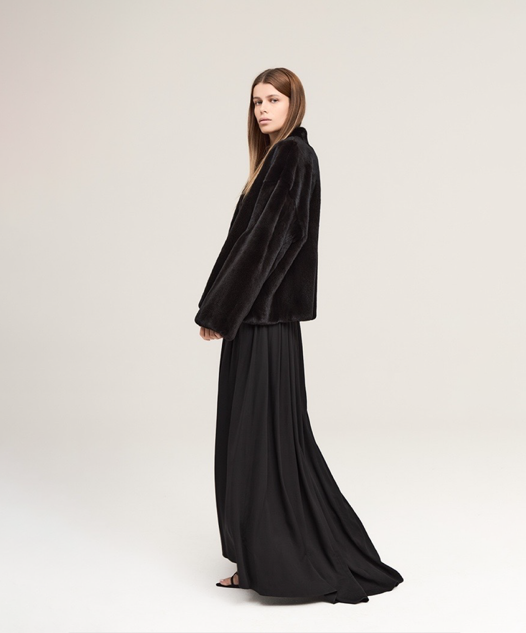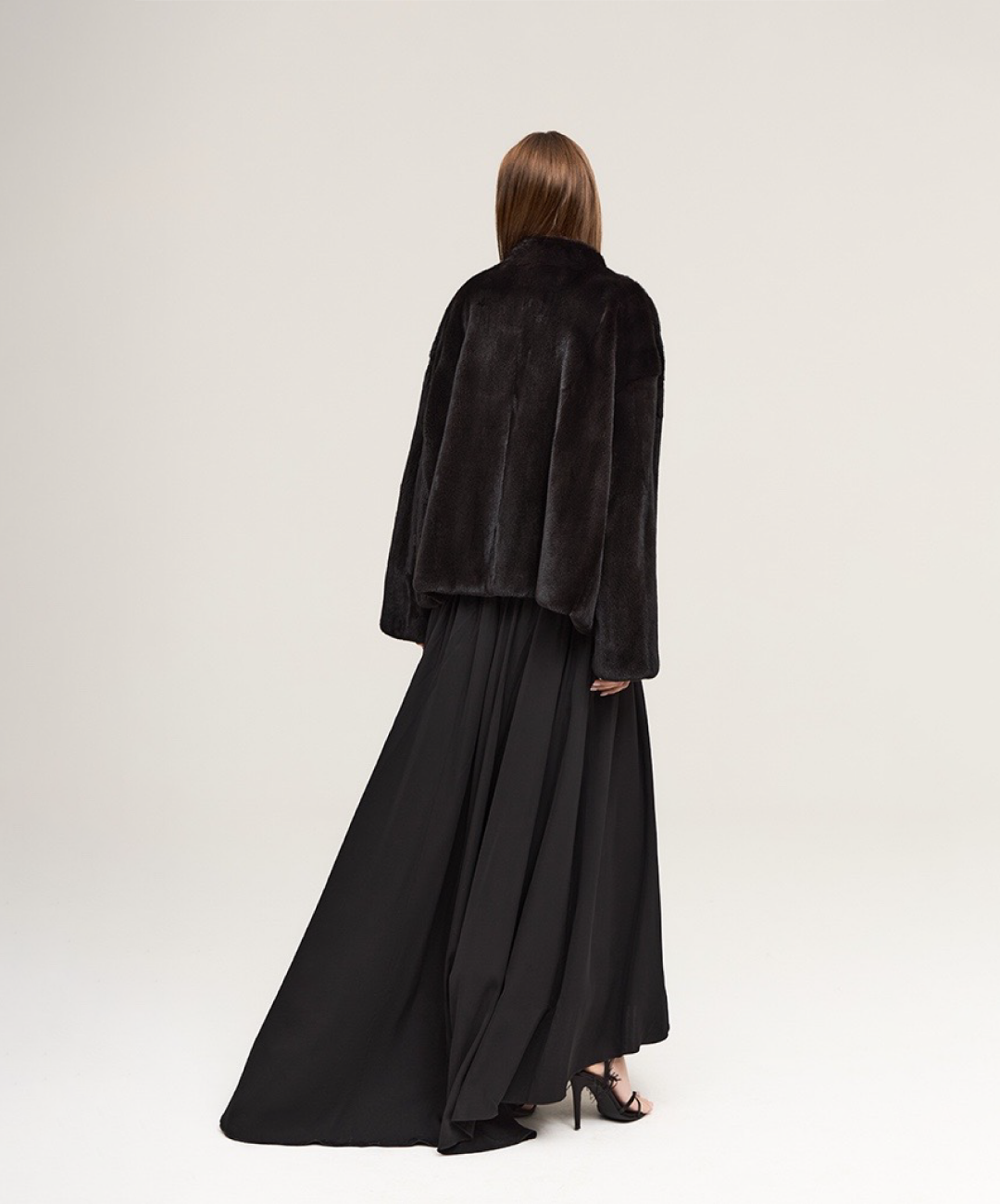 Dieser Pullover aus hochwertigem schwarzem Nerzfell bietet eine schlanke Silhouette mit einer luxuriösen, samtigen Textur. Das minimalistische Design und der hohe Kragen sorgen für einen markanten und modernen Look, perfekt für alle, die dezente Eleganz schätzen. Dieser Pullover ist sowohl für formelle als auch für legere Anlässe geeignet und definiert Eleganz mit einem mühelos stilvollen Touch neu.