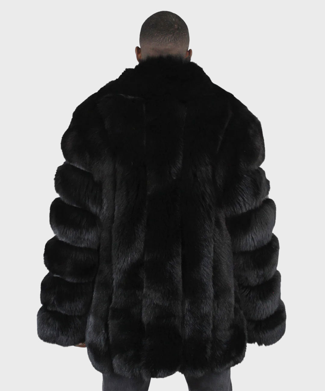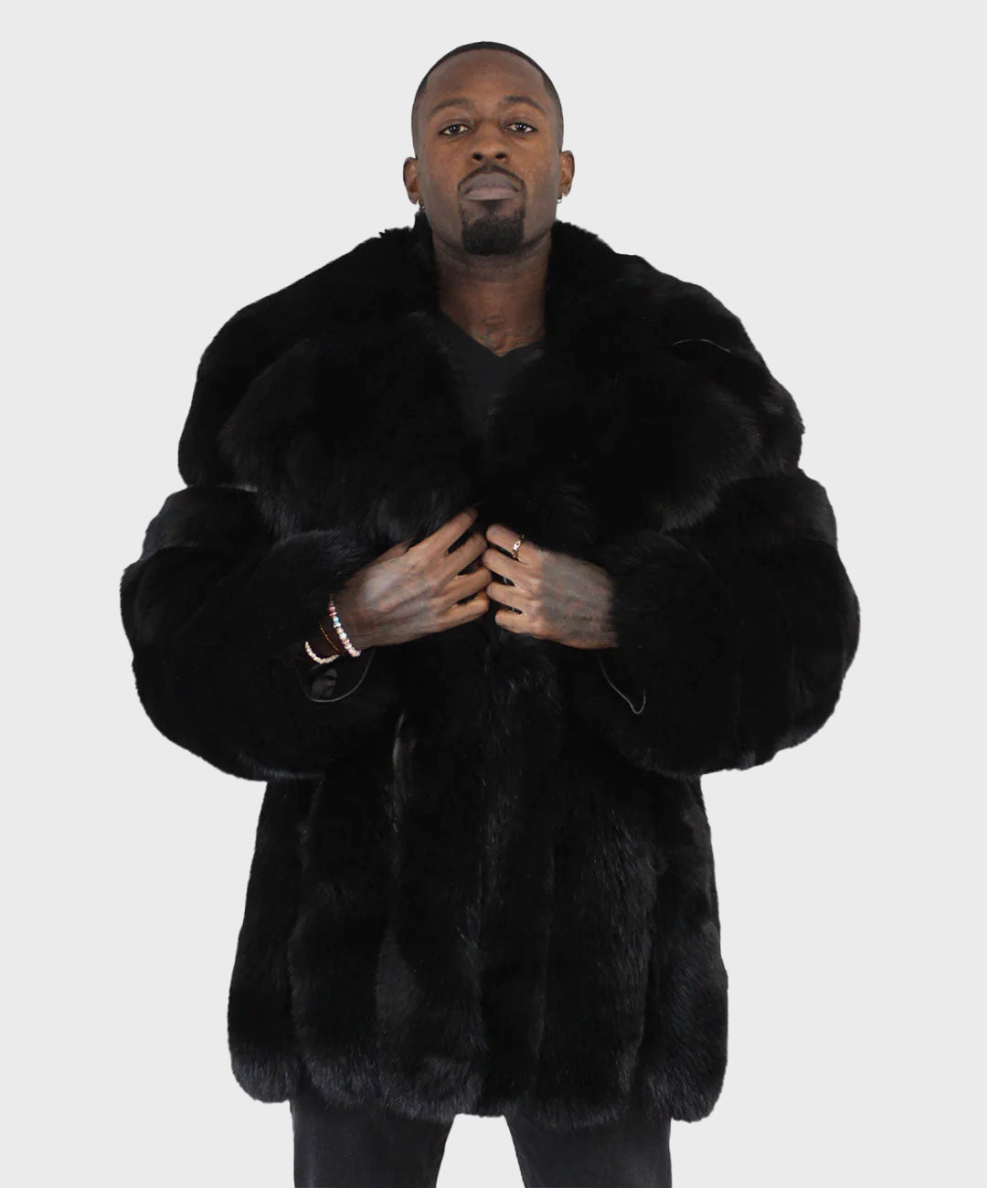 Strahlen Sie zeitlose Eleganz aus mit dem 3/4-Mantel aus schwarzem Fuchspelz für Herren.