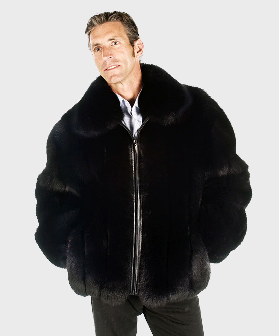 Diese Bomberjacke aus luxuriösem schwarzem Fuchspelz bietet eine elegante und zeitlose Silhouette mit einer üppigen, plüschigen Textur. Das vielseitige Design passt mühelos sowohl zu lässiger als auch zu gehobener Kleidung und macht sie zu einem unverzichtbaren Kleidungsstück für den anspruchsvollen Gentleman. Diese Jacke verbindet perfekt zeitgenössischen Stil mit klassischem Charme und bietet sowohl Wärme als auch unverwechselbare Eleganz.