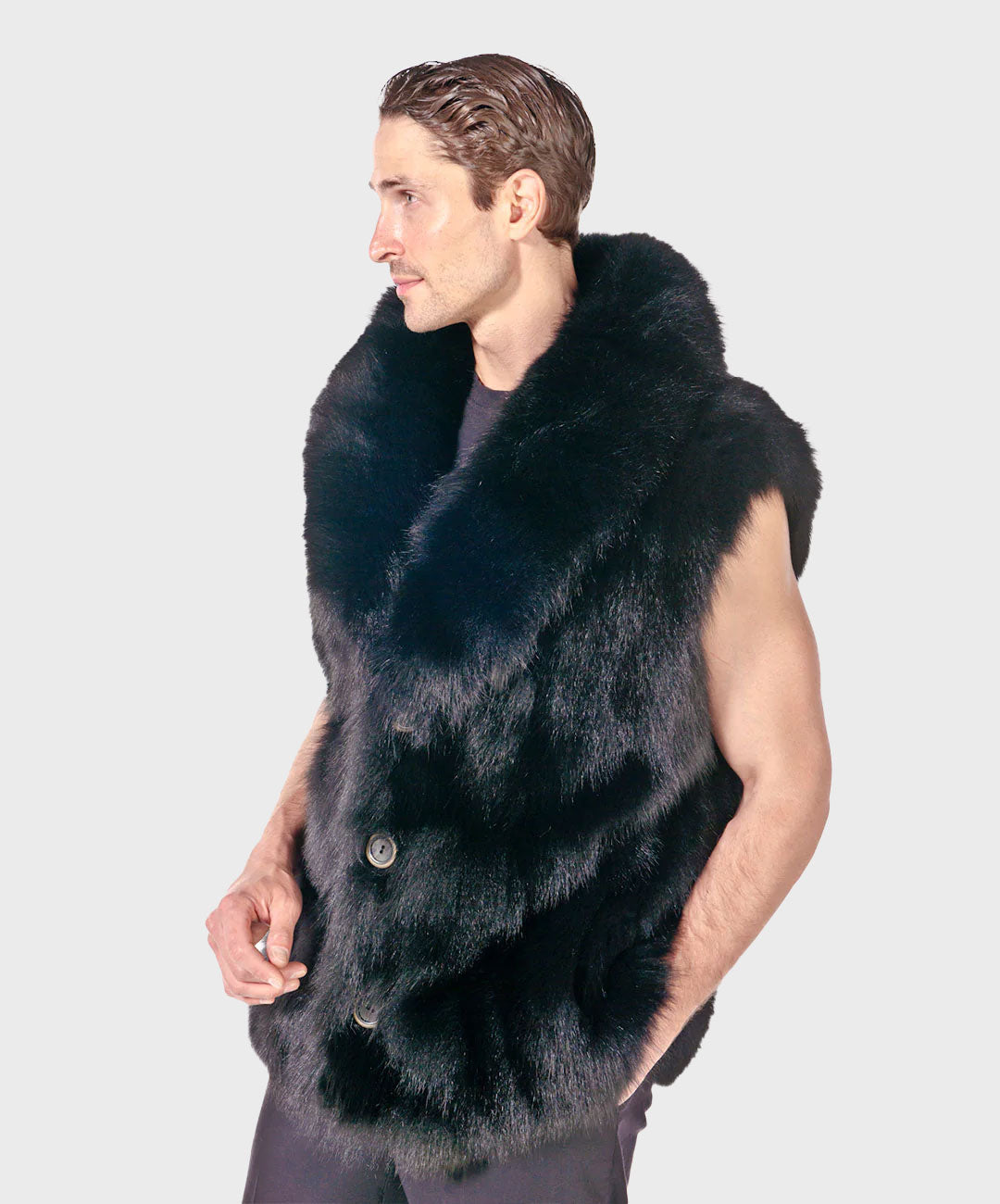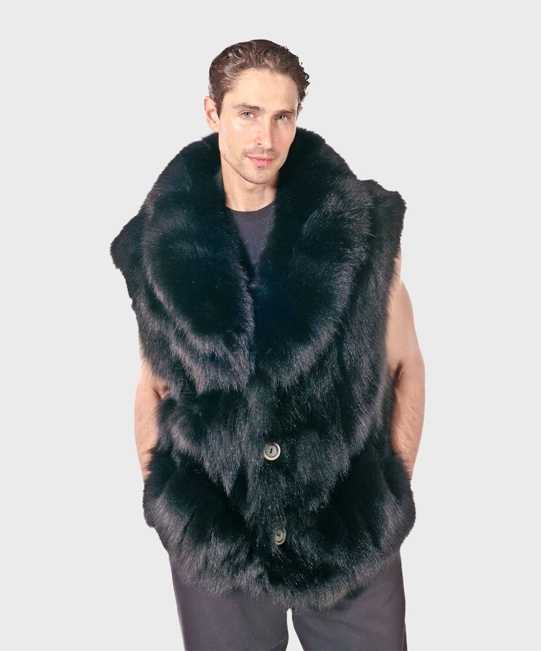 Schauen Sie sich unsere Herrenweste aus Fuchspelz an, ein Beweis für Kühnheit und ungezähmte Anziehungskraft.