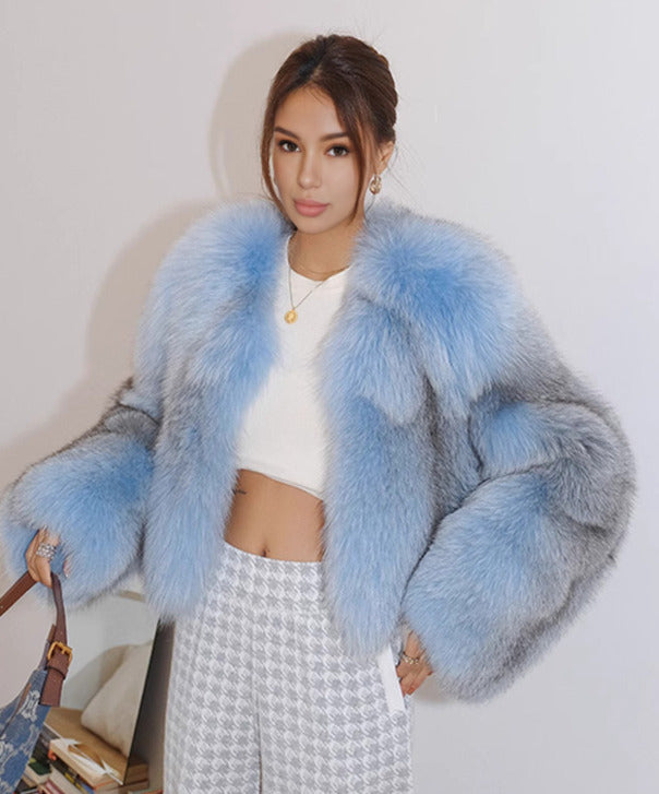 Braun gefärbte Silberfuchspelzjacke für Damen