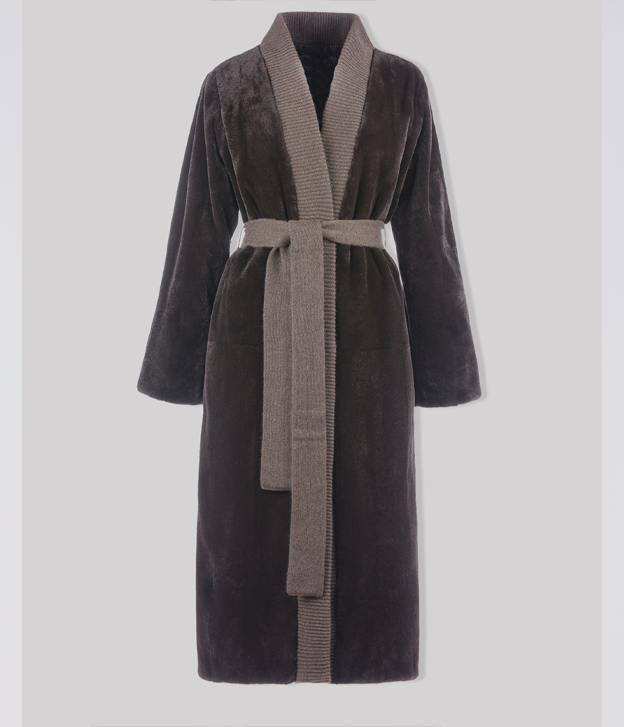Hüllen Sie sich in Opulenz mit unserem Maxi-Nerzmantel in Mahagoni für Damen, einem Symbol zeitloser Eleganz.