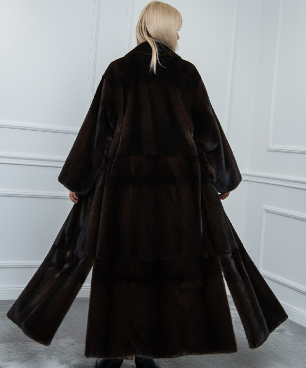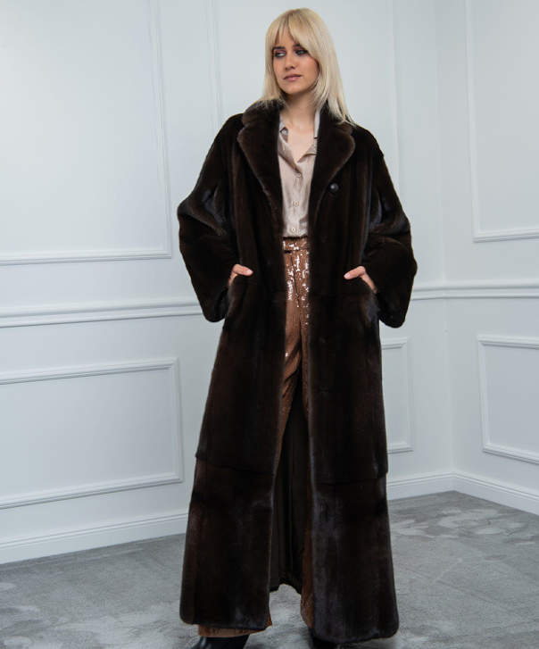 Hüllen Sie sich in Opulenz mit unserem Maxi-Nerzmantel in Mahagoni für Damen, einem Symbol zeitloser Eleganz.