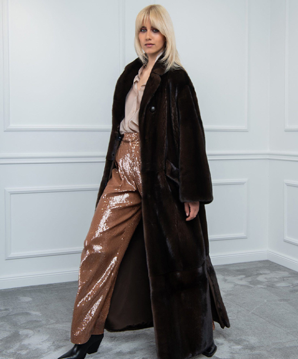 Die Maxilänge wurde sorgfältig aus feinstem Mahagoni-Nerz gefertigt und verleiht dem Ganzen einen dramatischen und luxuriösen Look. Werten Sie Ihren Winterstil mit diesem Statement-Stück auf, das perfekt ist, um bei jeder Gelegenheit einen bleibenden Eindruck zu hinterlassen.