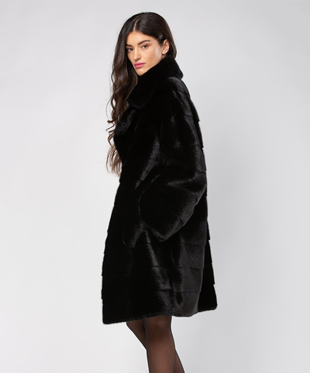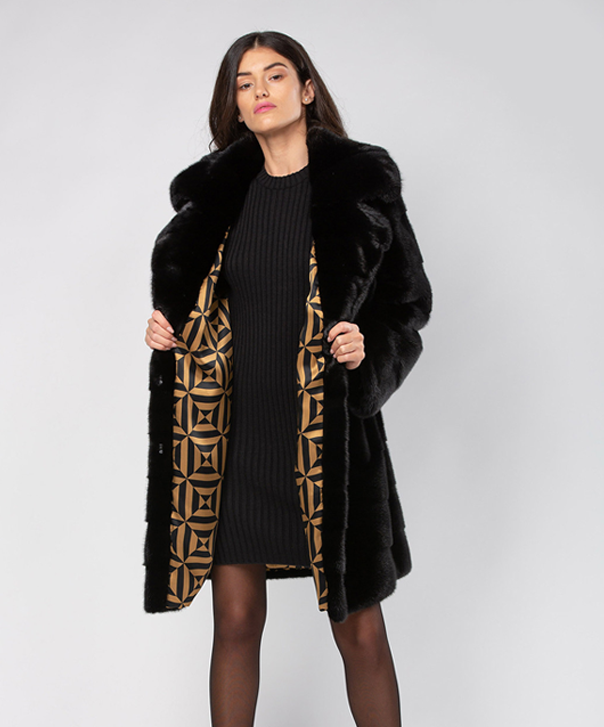 Die Maxilänge wurde sorgfältig aus feinstem Mahagoni-Nerz gefertigt und verleiht dem Ganzen einen dramatischen und luxuriösen Look. Werten Sie Ihren Winterstil mit diesem Statement-Stück auf, das perfekt ist, um bei jeder Gelegenheit einen bleibenden Eindruck zu hinterlassen.