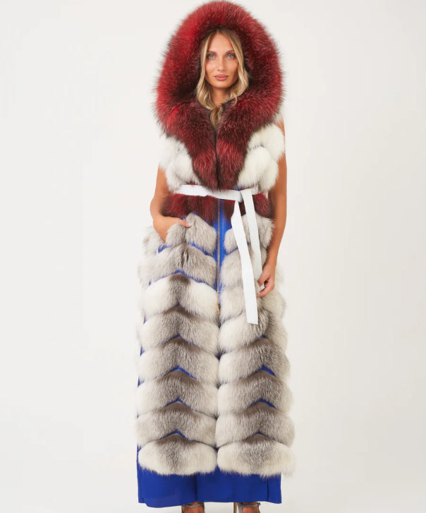 Diese Jacke wurde fachmännisch aus üppigem Silberfuchspelz gefertigt und ist wunderschön in einem satten Braun gefärbt, das einen warmen, erdigen Farbton bietet, der Eleganz ausstrahlt. Das plüschige Fell sorgt für außergewöhnliche Weichheit und Wärme, während die tiefe, nuancierte Farbe einen Hauch von raffiniertem Luxus verleiht. Mit ihrer sorgfältigen Verarbeitung und ihrem klassischen Design verbindet diese Jacke nahtlos Stil und Komfort und ist damit die perfekte Wahl für die Saison.