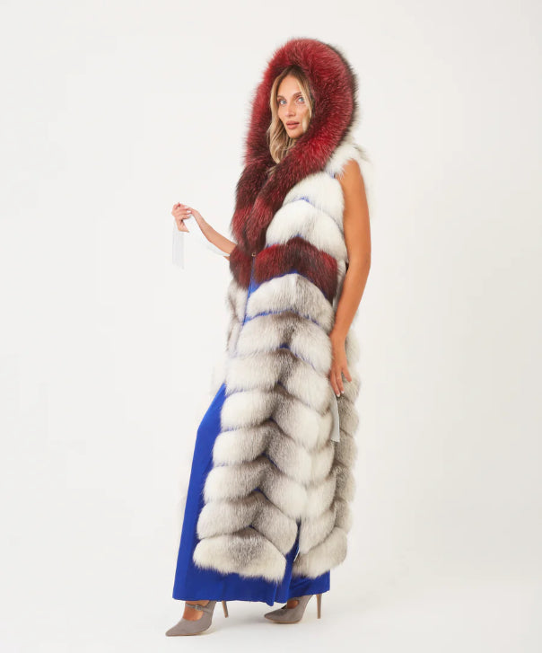 Erweitern Sie Ihre Wintergarderobe mit der eleganten braun gefärbten Silberfuchspelzjacke für Damen.