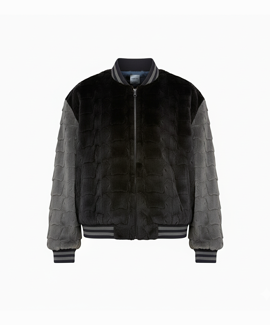 Charcoal Grey Diamond Cut Mink Fur Baseball Jacket