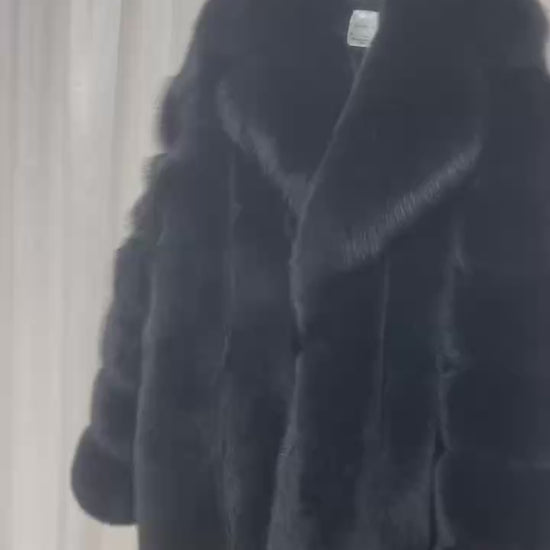 Women's 3/4 Black Fox Fur Coat - 2XL