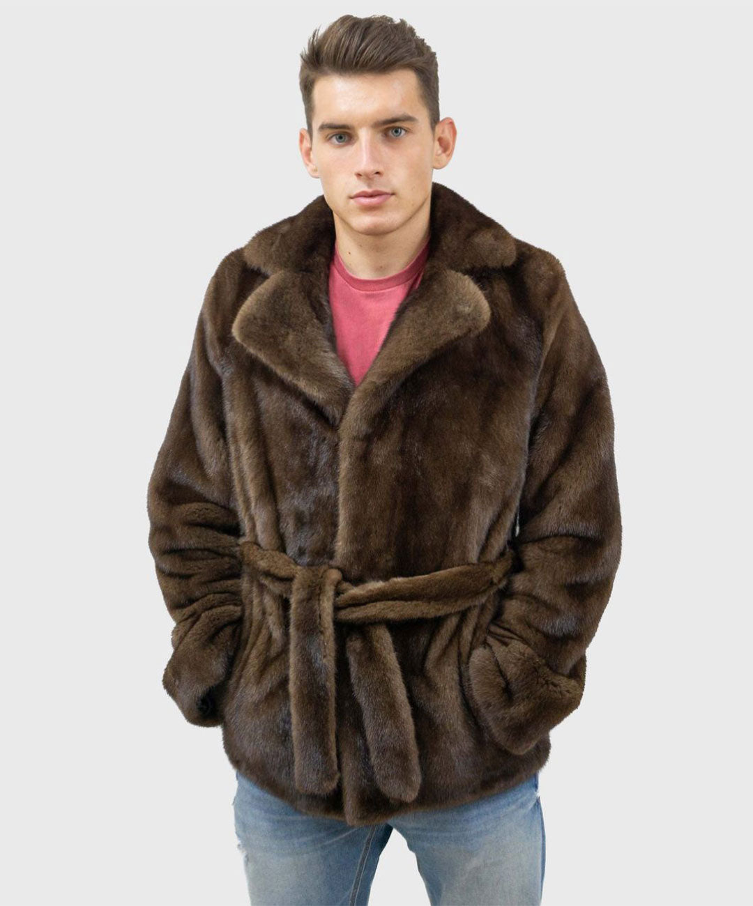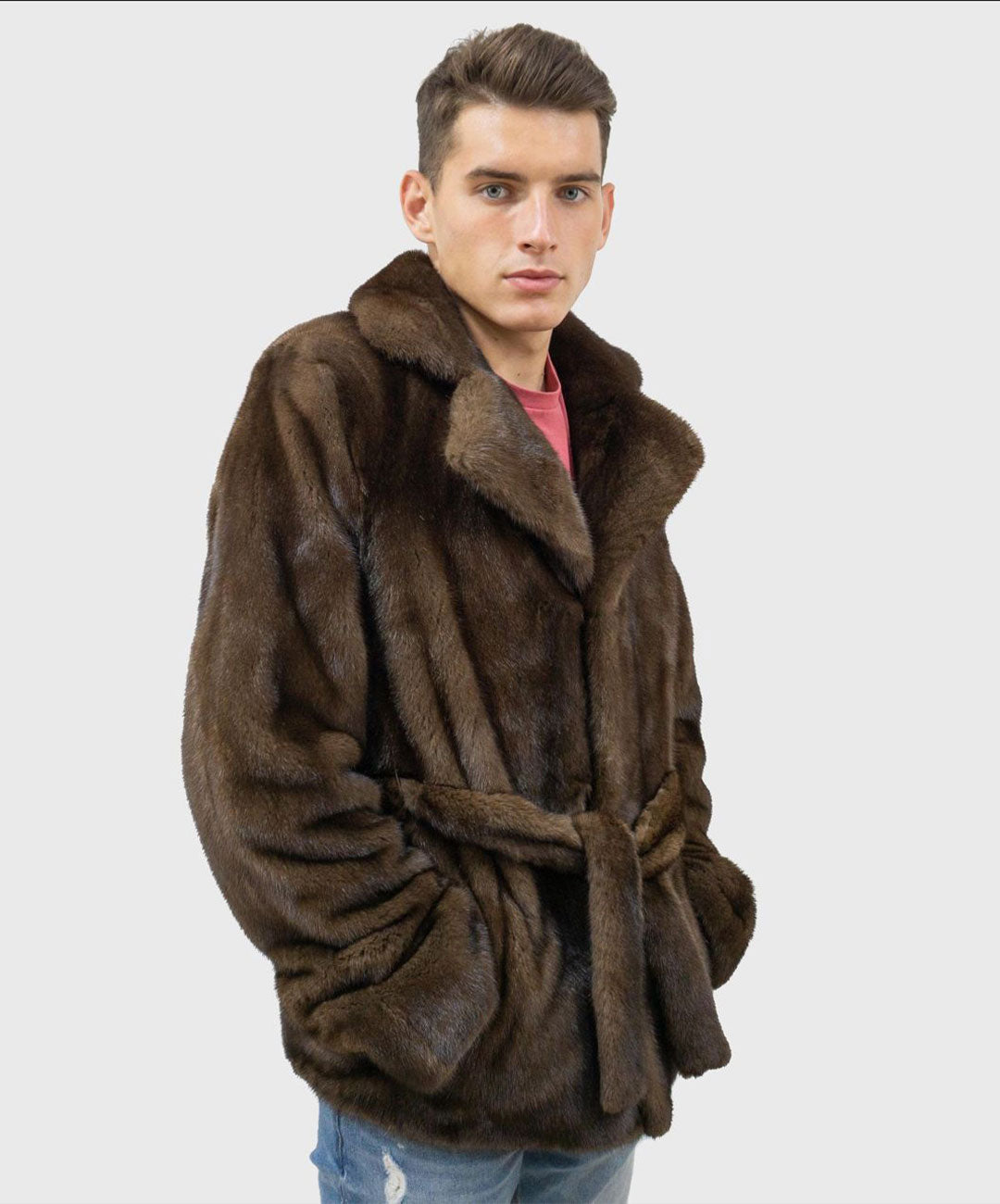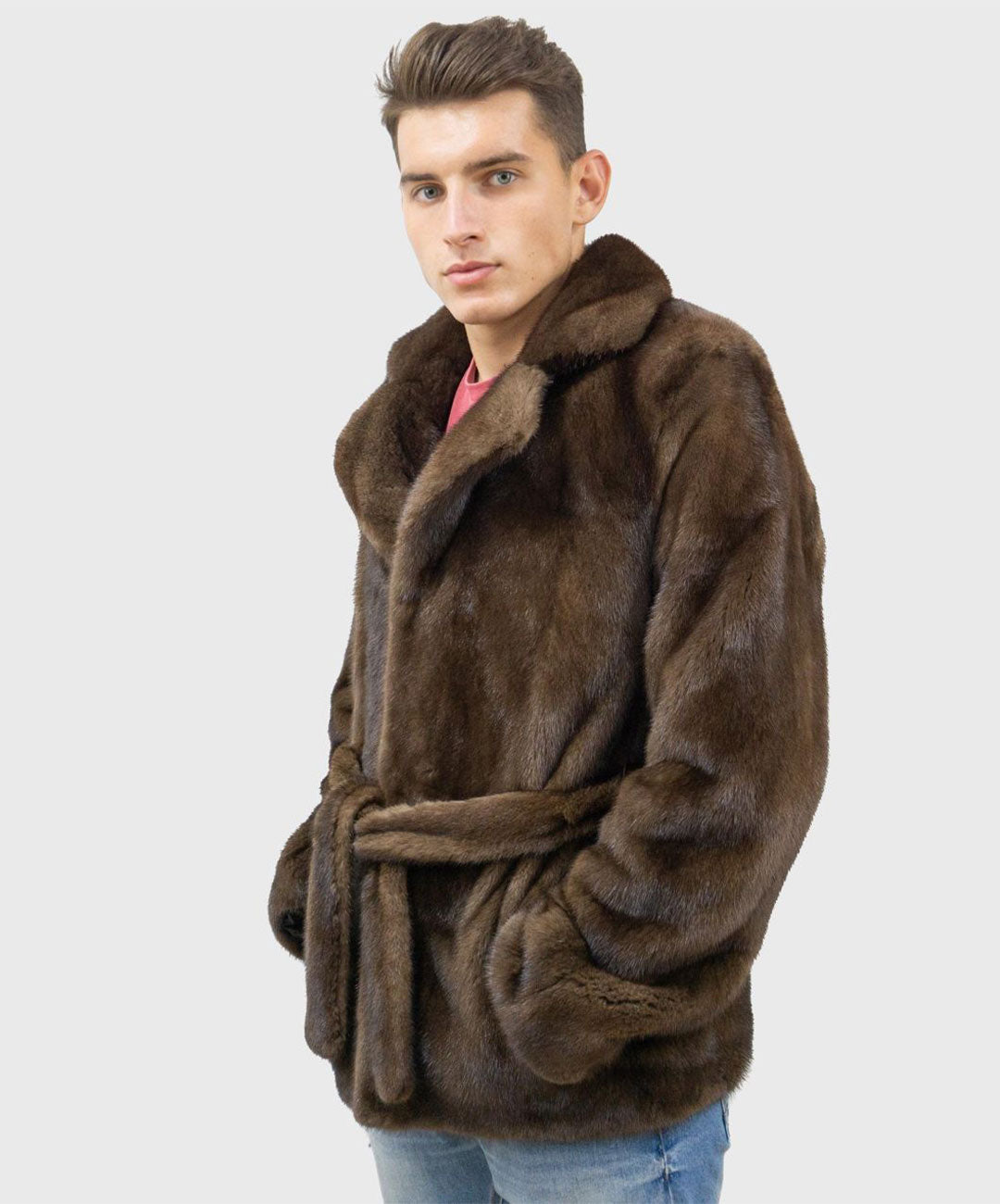 Crafted from luxurious brown mink fur, this jacket features a rich, warm hue that adds a touch of sophistication to any outfit. The plush, velvety texture provides exceptional comfort and warmth, while the sleek design offers a modern, refined silhouette. With its impeccable craftsmanship and timeless elegance, this jacket effortlessly combines classic style with contemporary flair, making it a standout piece for any discerning gentleman.