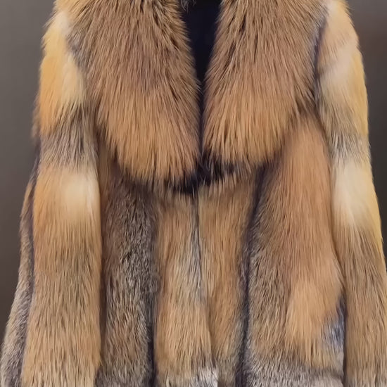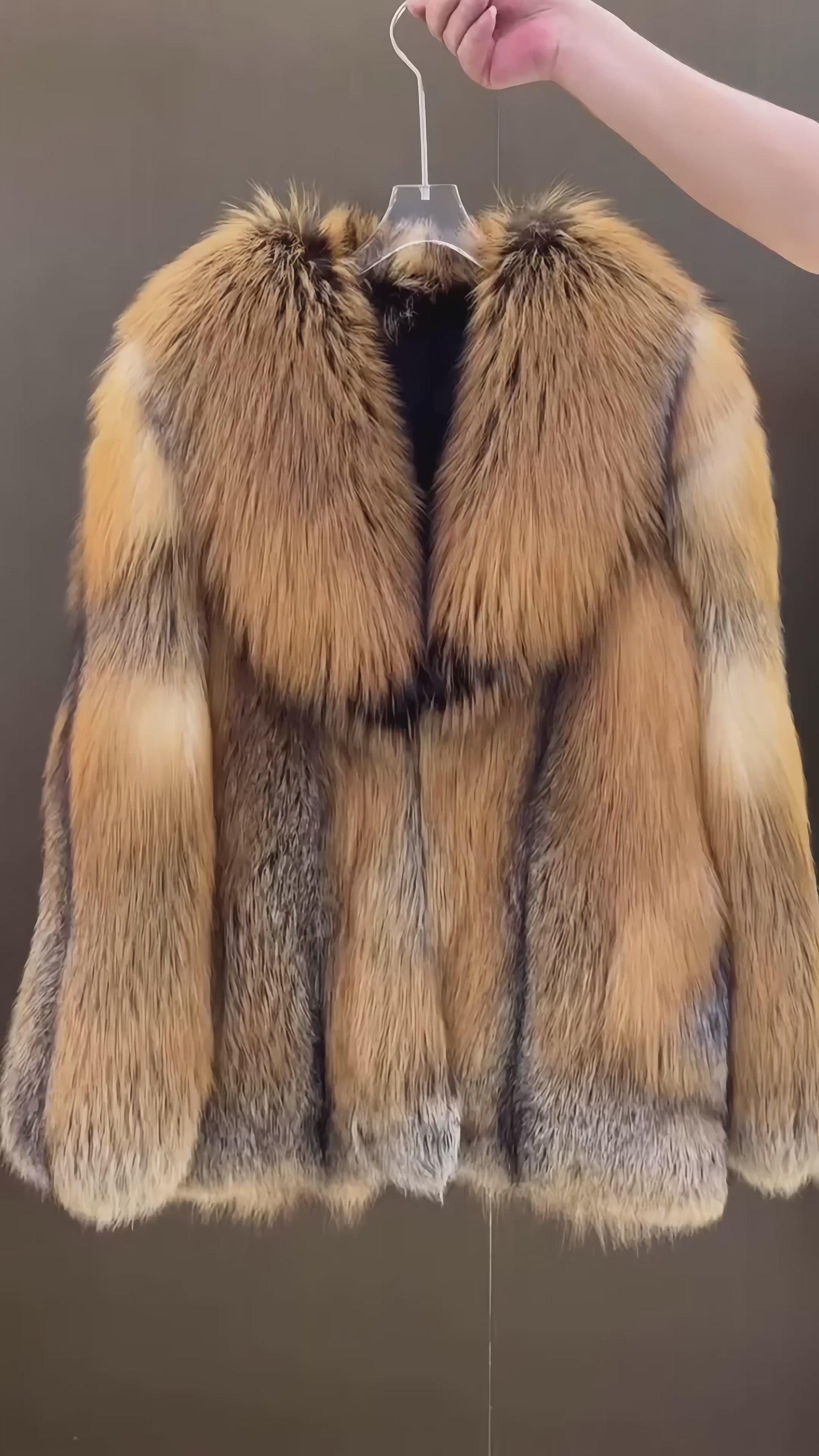 The Scarlet Ember Coat showcases the fiery beauty of natural red fox fur, featuring rich russet tones blended with warm golden highlights.Plush, voluminous, and exquisitely soft, this coat delivers striking elegance with every step.