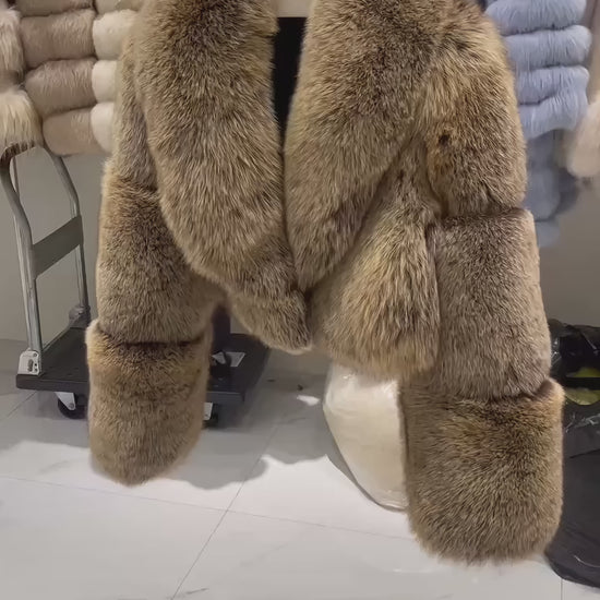 Elevate your wardrobe with the Taupe Fox Fur Coat.