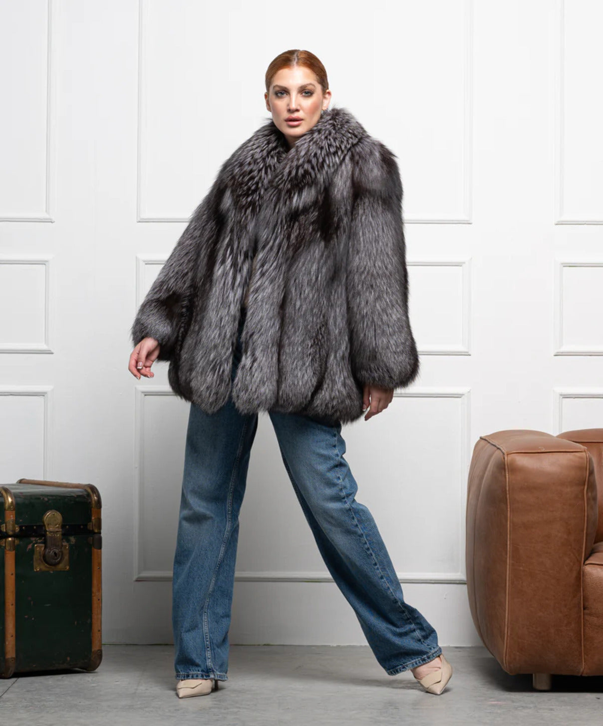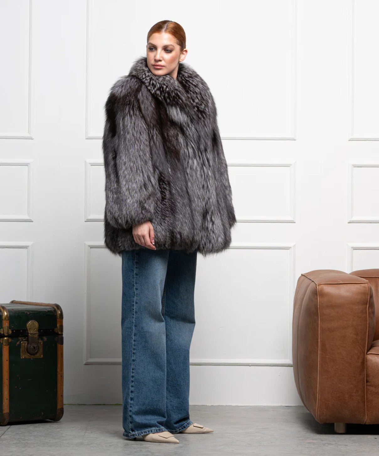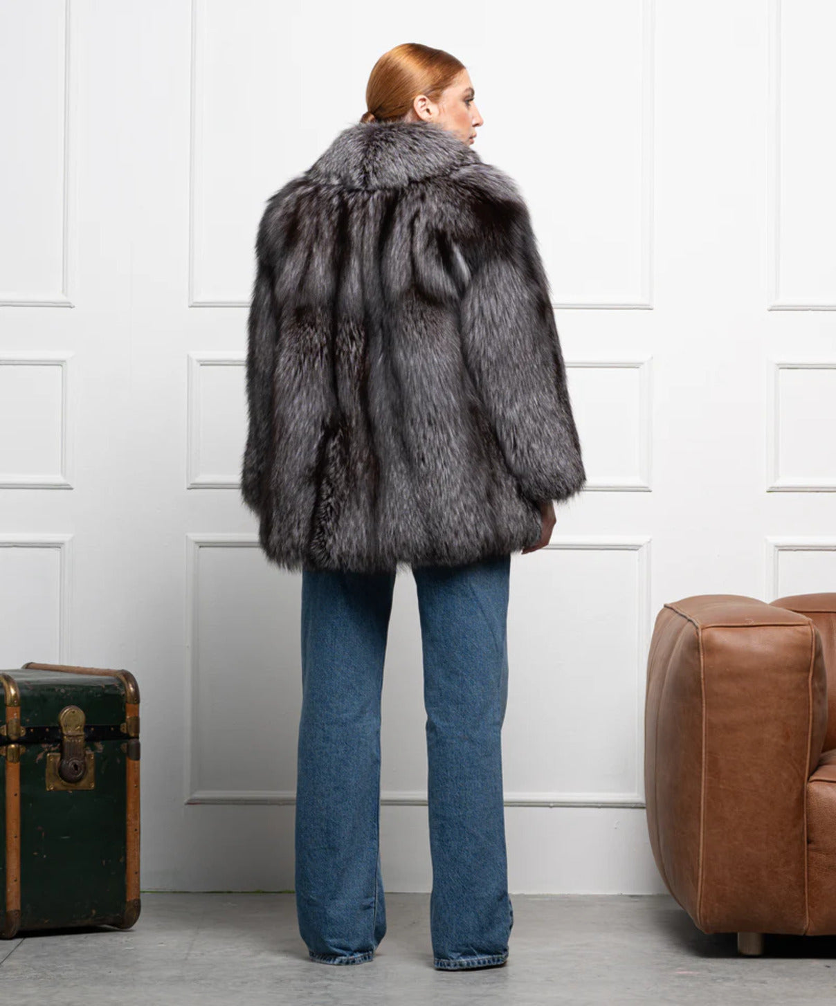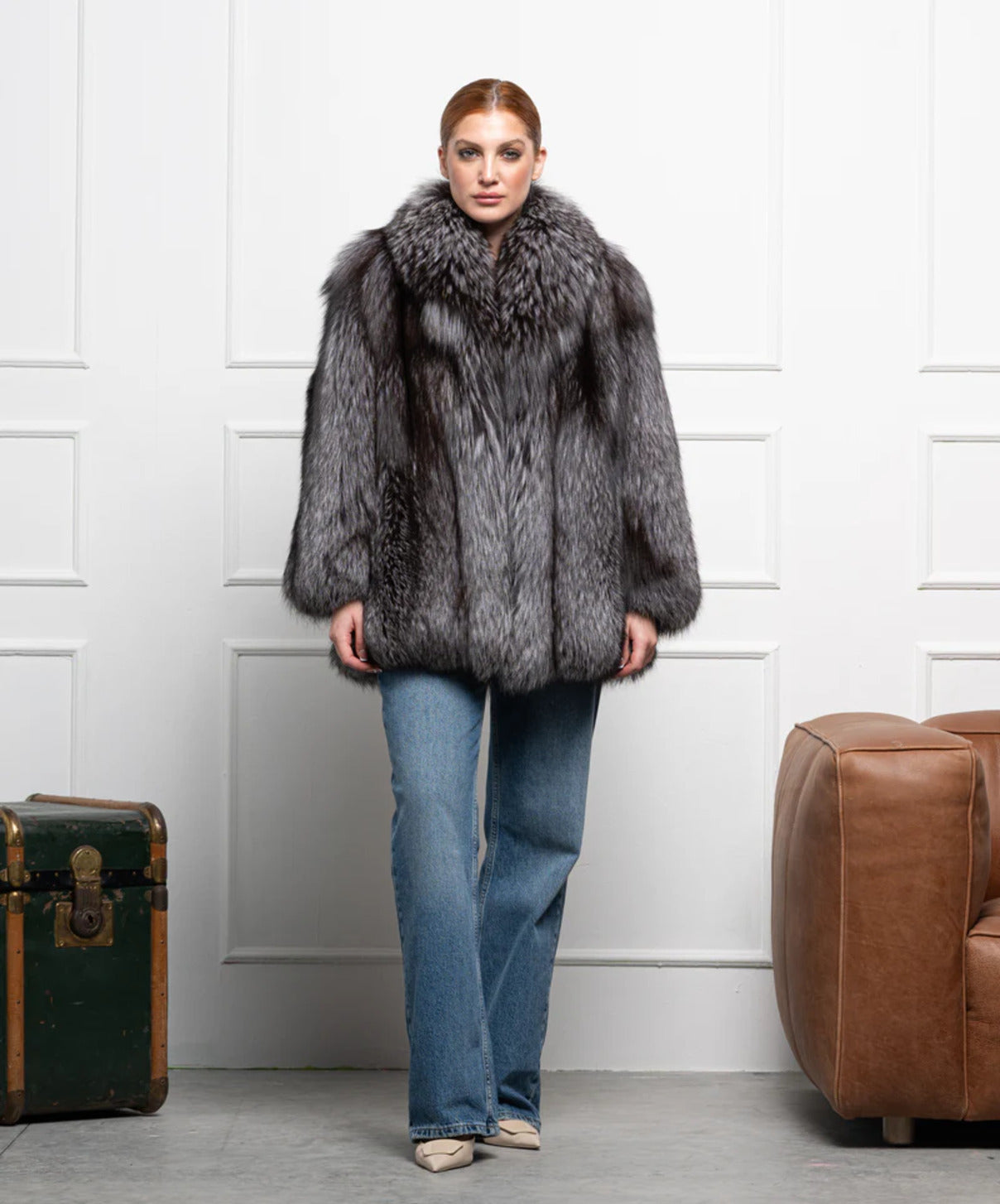 Exude timeless elegance with the Silver Fox Fur Coat.