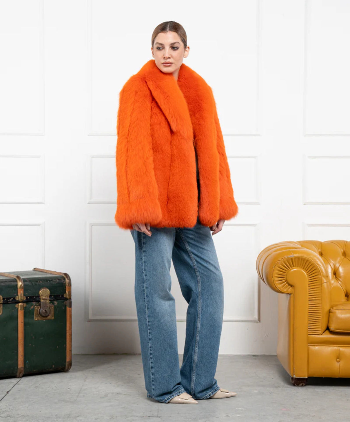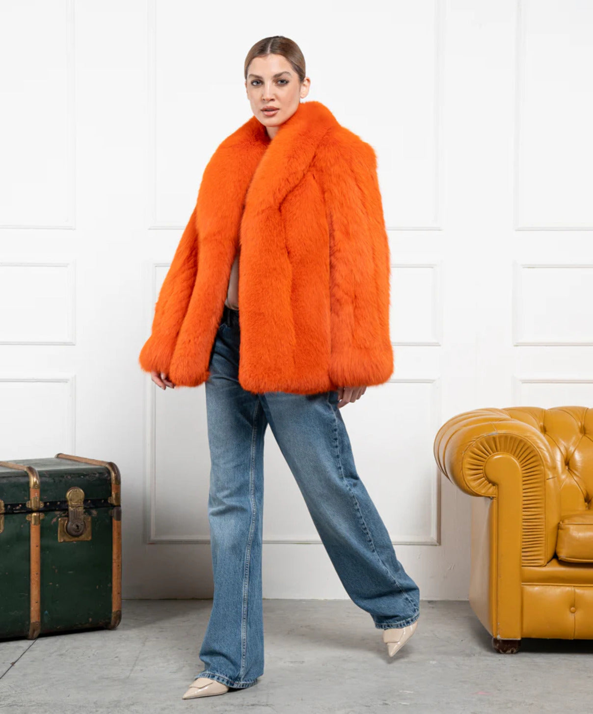 Brighten your winter style with the ‘Orange’ Fox Fur Coat.