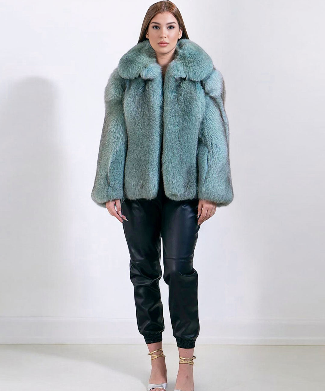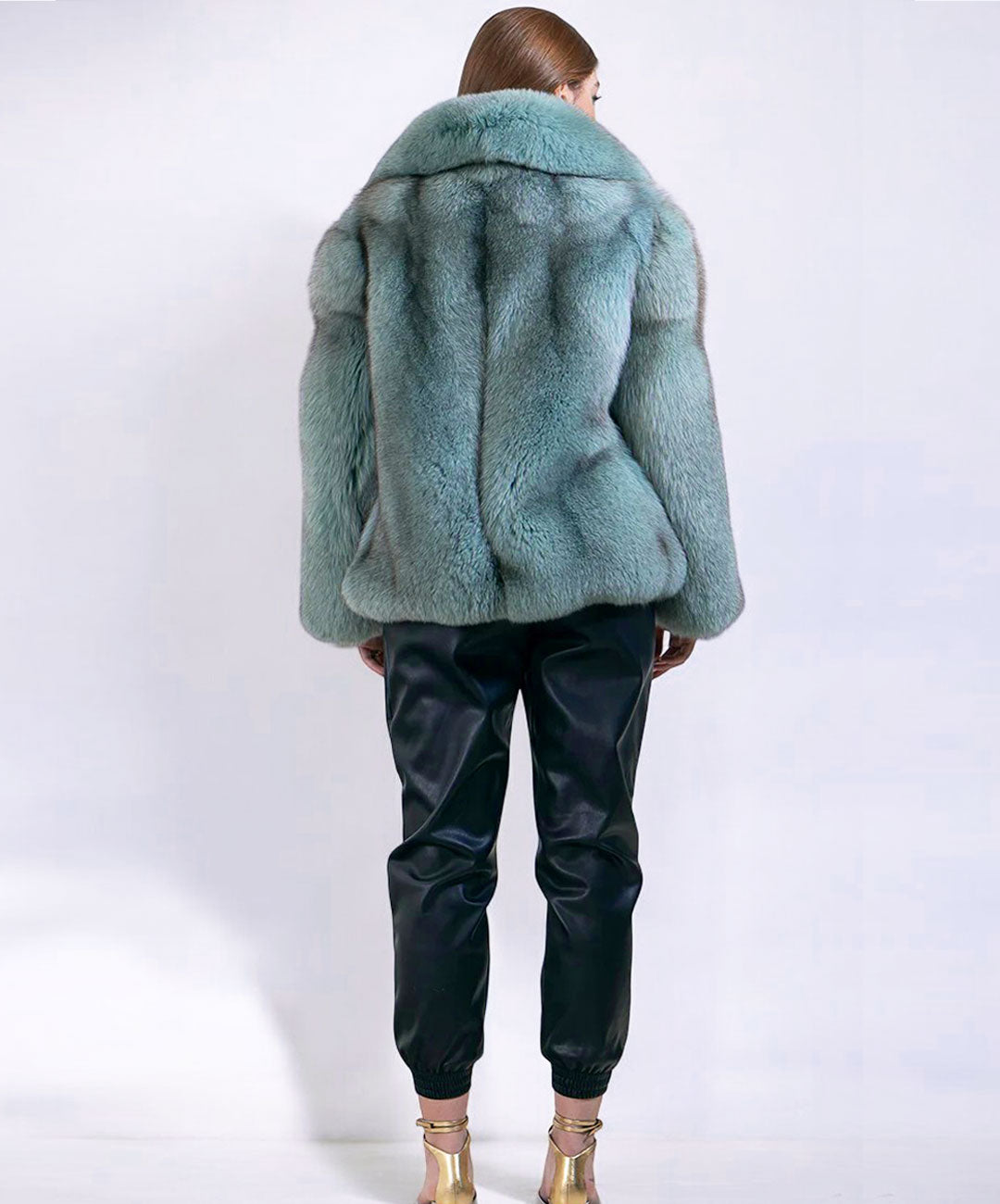 Crafted from luxurious mint blue fox fur, this bomber jacket offers a unique, serene color that brings a touch of modern elegance to your look. The soft, plush fur provides exceptional warmth and comfort, while the chic bomber style adds a contemporary twist. With its meticulous craftsmanship and eye-catching hue, this jacket is the perfect blend of sophistication and playful charm, making it a standout piece for any season.