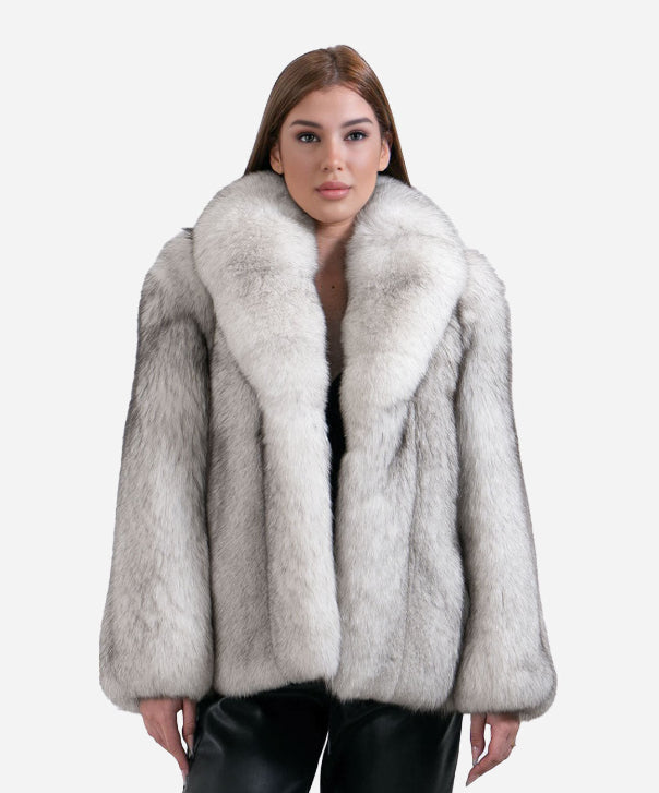Step into refined elegance with the Natural Blue Fox Fur Coat.