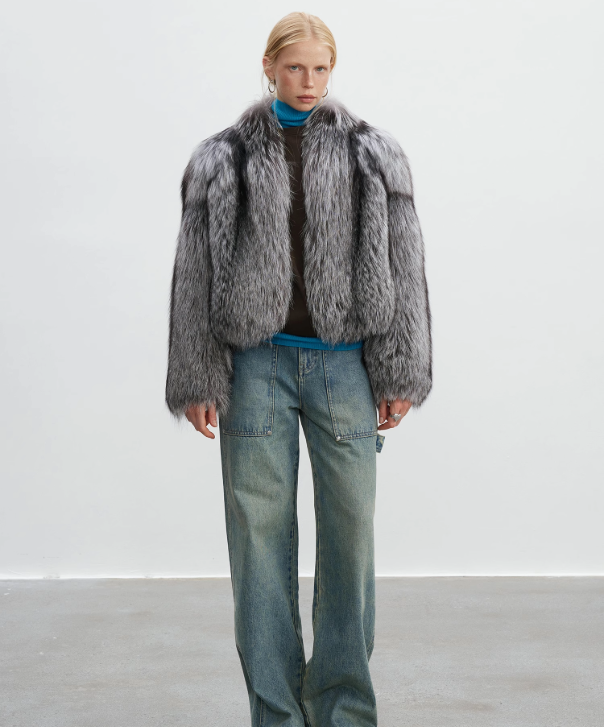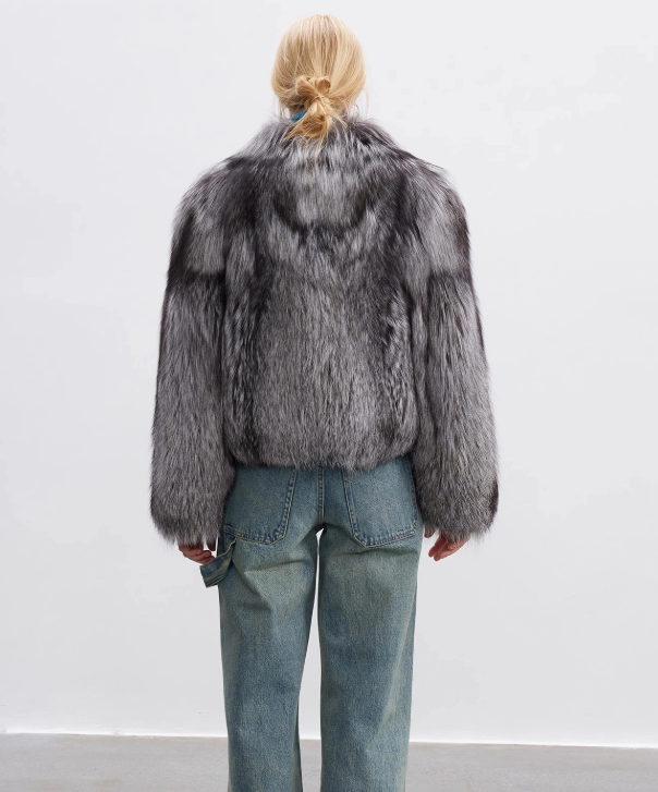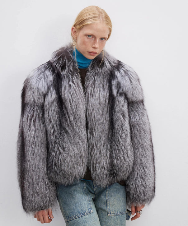 Enhance your winter wardrobe with the luxurious Silver Fox Fur Jacket.