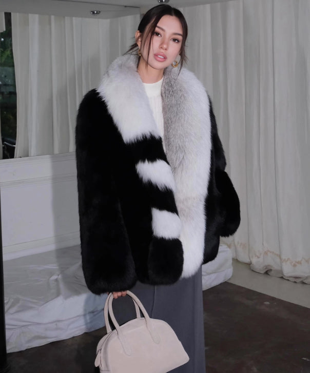 Elevate your style with the sophisticated Winter Noir Fox Fur Coat.